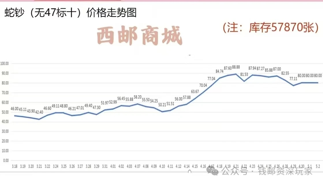 本周交易额相对于上周相差不大,一百多万的成交额分摊到整个盘面291个品种,盘面上的活跃度稍微差点意思,尽量参与几个活跃品种《2025年蛇年纪念钞(无47标十)》,《1953年版壹分无油》,《1966年伍市斤全国粮票》,《四版805姹紫映山红》,《一分币签合一》,这几个品种都表现平平,已经回调接近两周时间。