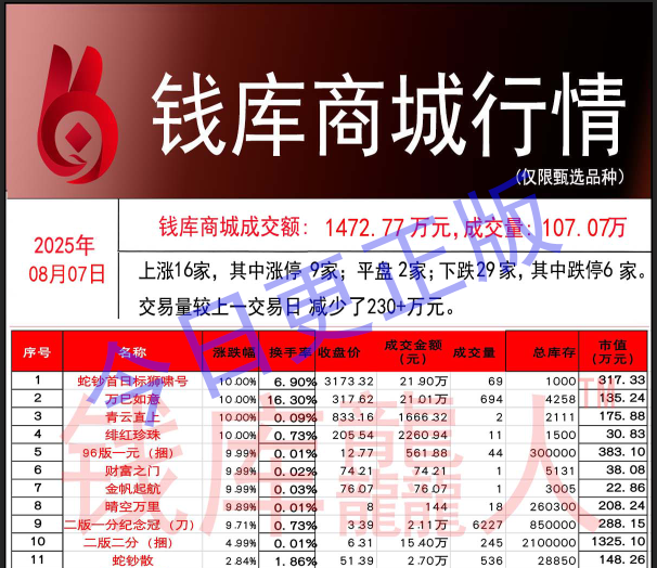 钱库商城行情-20250807钱库龘人看市