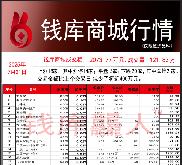 钱库商城行情-20250721钱库龘人看市