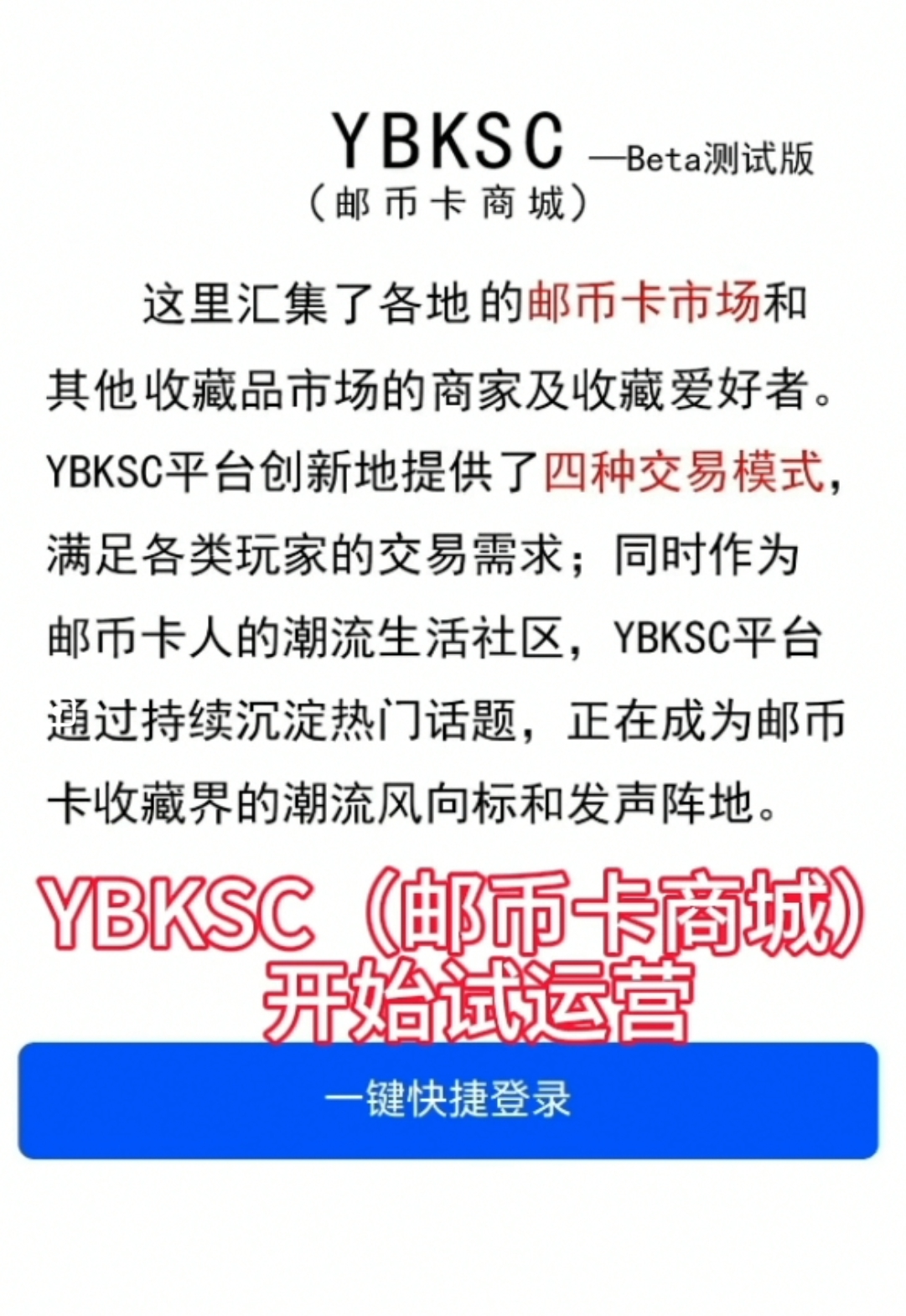 YBKSC(邮币卡商城)开始试运营-1