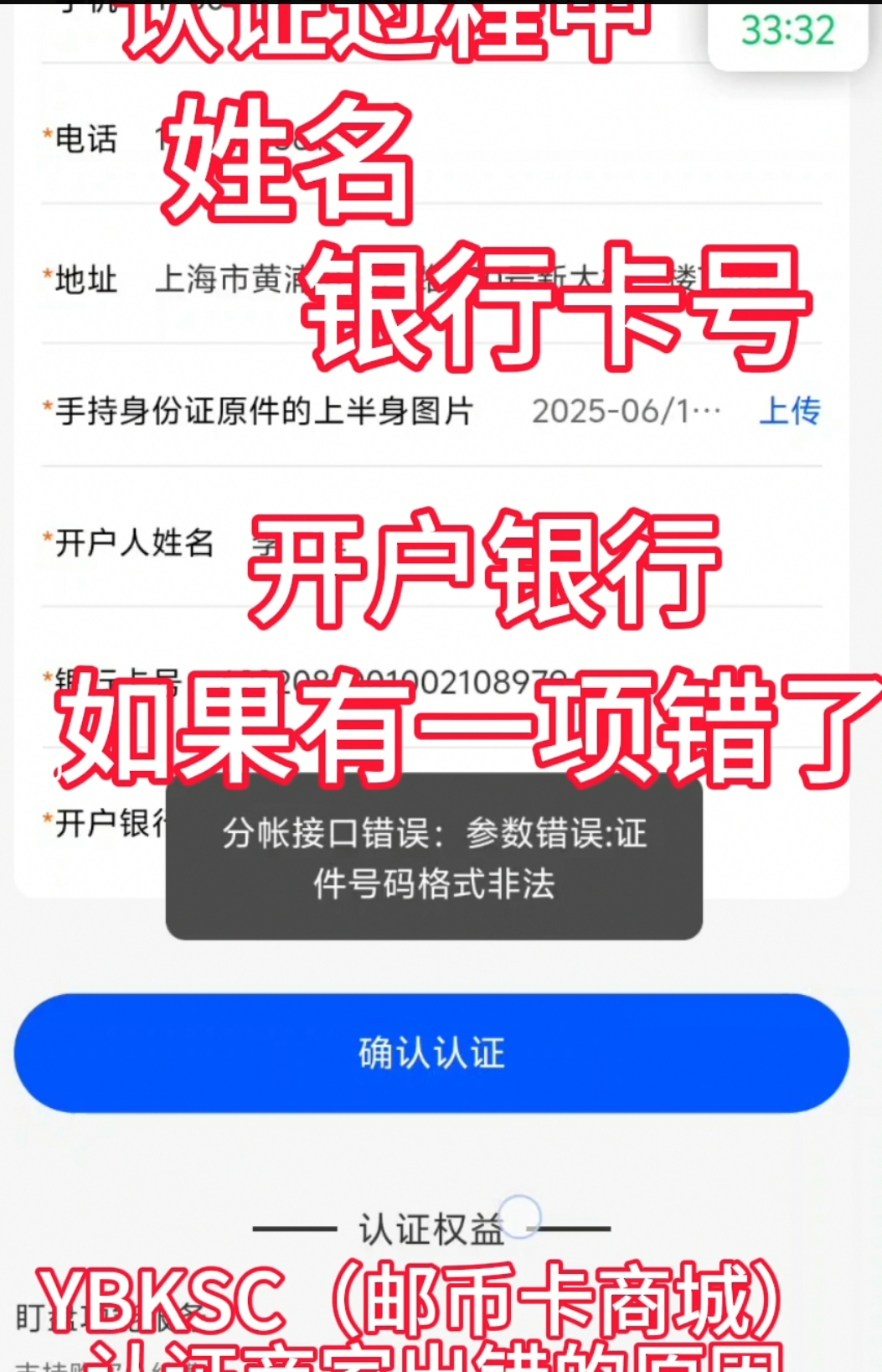 会员在 YBKSC (邮币卡商城)认证时出错的原 因
